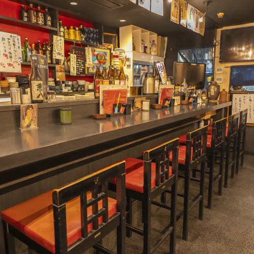 카운터 6석은 혼자 마시고 단골 씨에게 인기의 자리 ♪ 점주와의 대화도 즐길 수 있는, 집에서 아늑한 공간에서 즐기는 닭꼬치와 맥주는 각별 ☆ 일 끝나는 사쿠에만 꼭 와 주세요 ♪